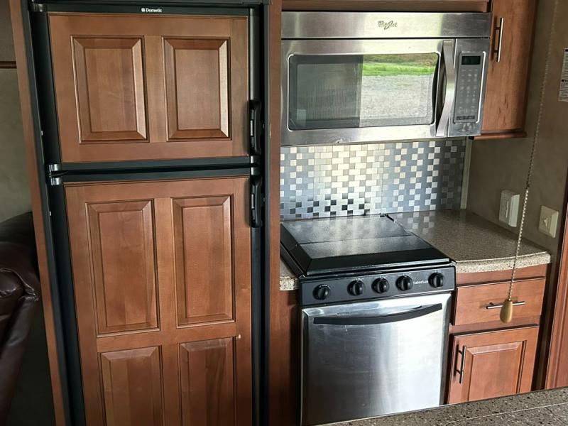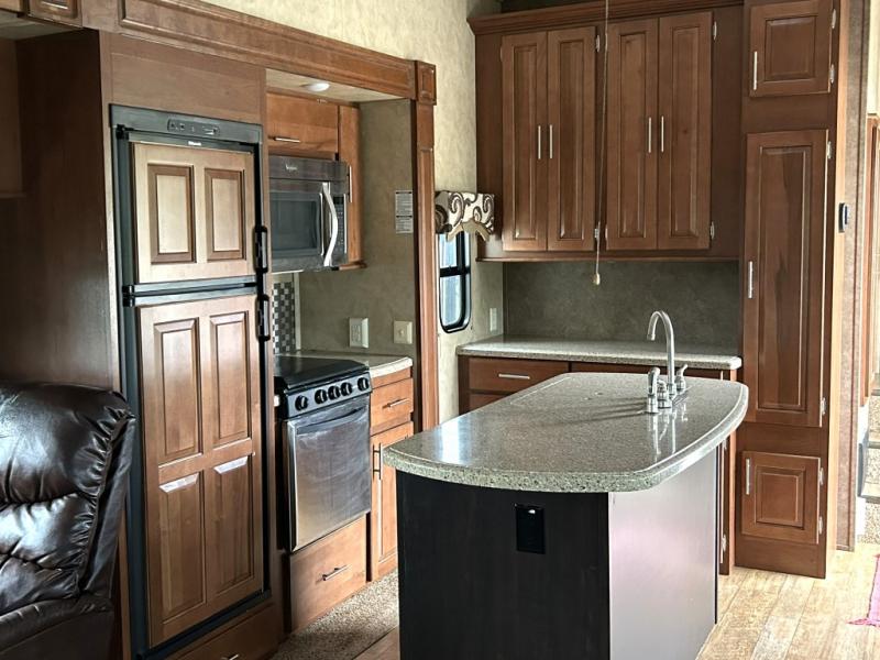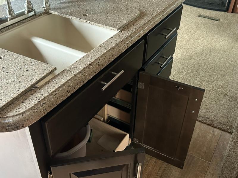 With three well-placed slide-outs, this fifth wheel opens up to create a spacious, residential-style layout—perfect for entertaining, relaxing, or cooking up a meal after a day on the road. -