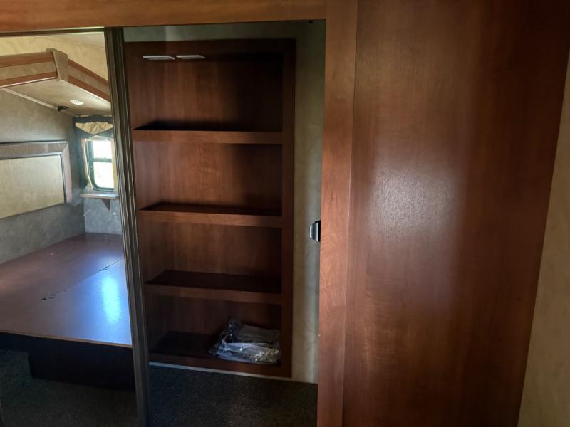 The front bedroom has much room with a queen bed slide or you can choose an optional king bed. Across from the bed there is a dresser with a TV above the dresser. The front wardrobe offers additional storage as well as having an optional washer/dryer combo.