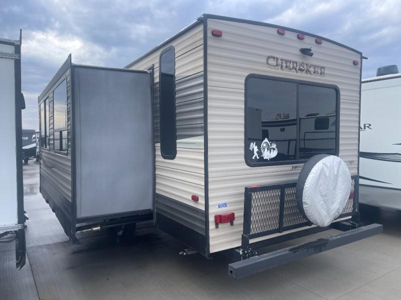 The Cherokee Cascade 264L travel trailer by Forest River offers a single slide and a rear living area.