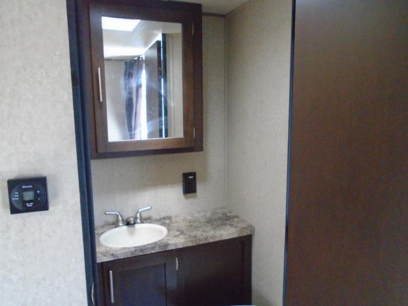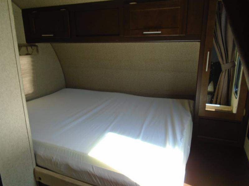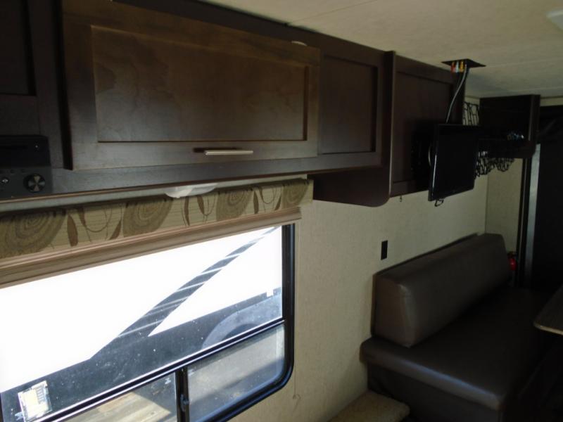 There are plenty of overhead cabinets throughout the travel trailer as well as outside storage.
