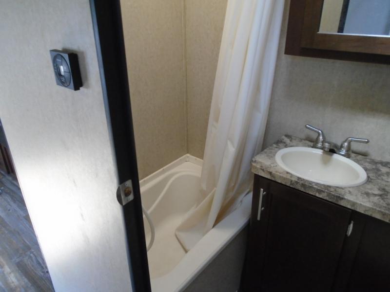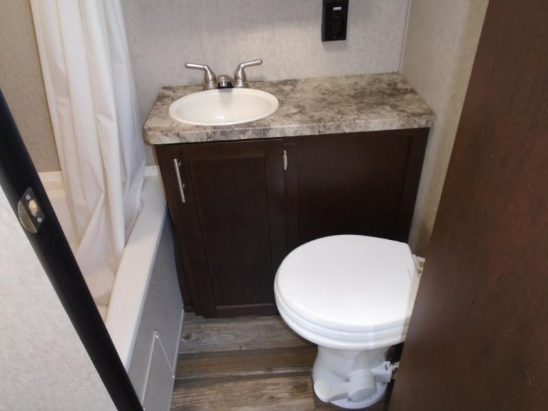 The Cherokee Grey Wolf 25RR toy hauler travel trailer offers a large cargo area to haul your off road toys.