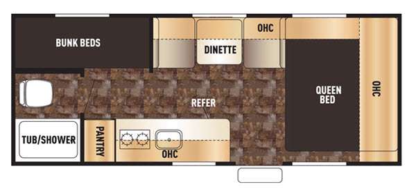 In the rear of the trailer the bunk beds provide additional sleeping space for your family.