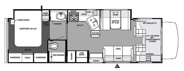 Above the cab there is a 54" x 80" bunk or you can choose an optional entertainment center.