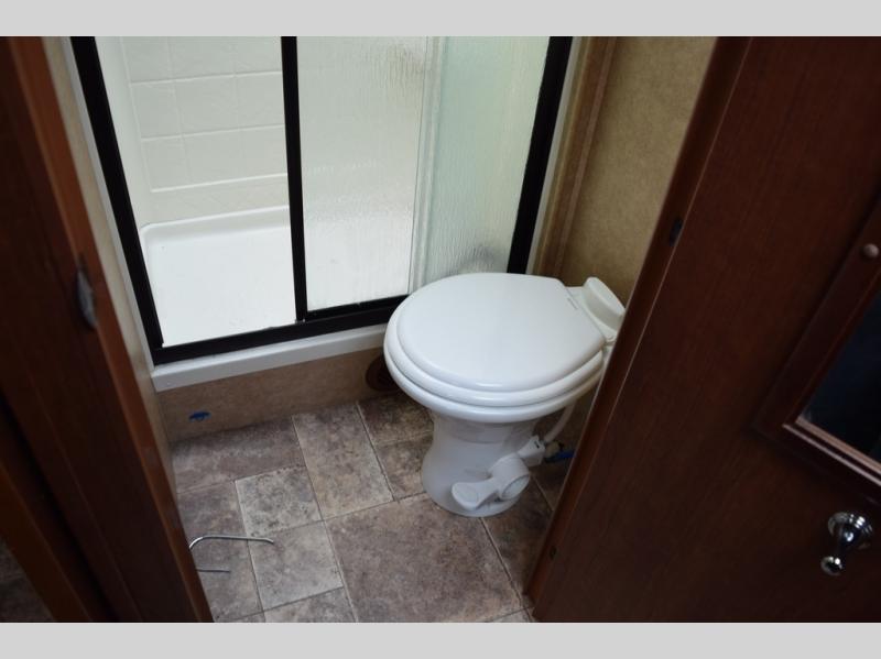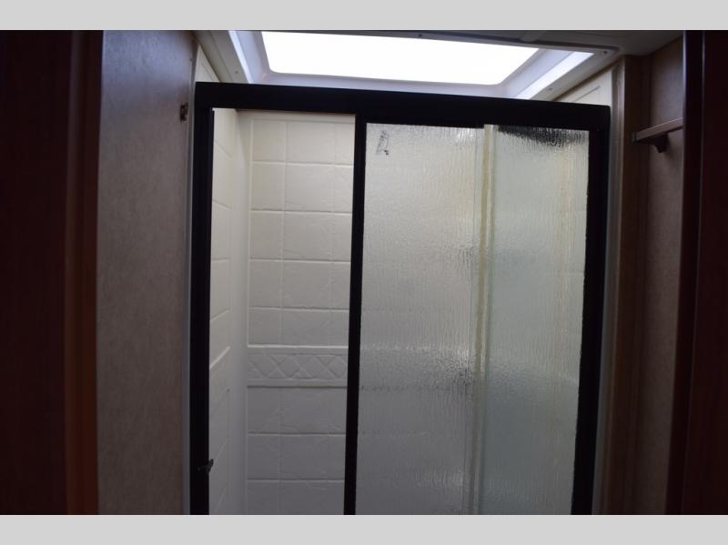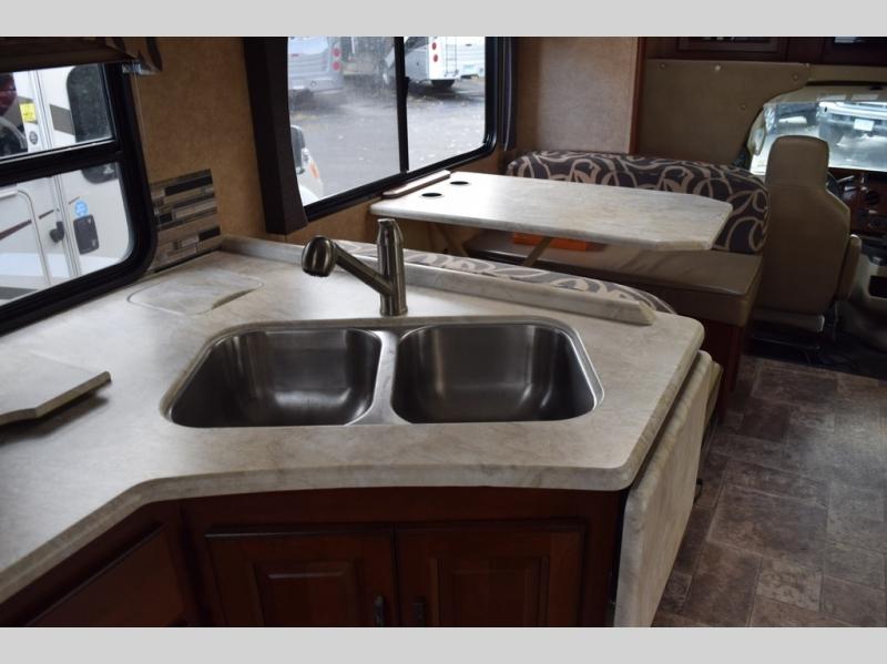 The Ford chassis Forester 3051S features a full wall slide on the driver's side of this class C motor home.