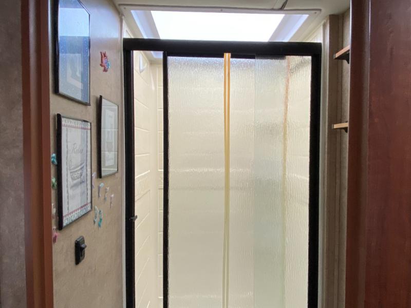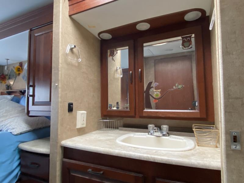The Ford chassis Forester 3051S features a full wall slide on the driver's side of this class C motor home.