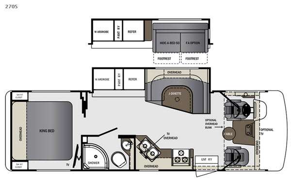 The Georgetown 270S motor home by Forest River offers a single slide, an optional overhead bunk and a table between the driver and passenger seats.