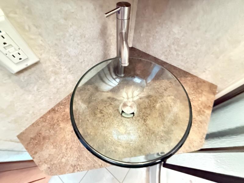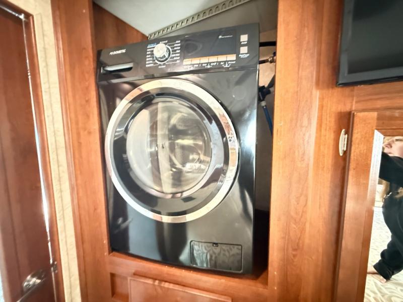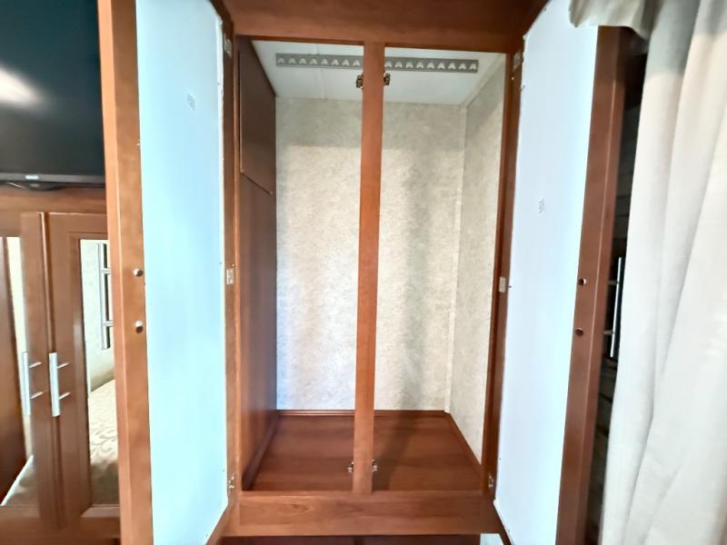 In the bedroom you will find a queen size bed and nightstands slide. Across from the bed there is a large wardrobe, TV, and an optional washer/dryer.