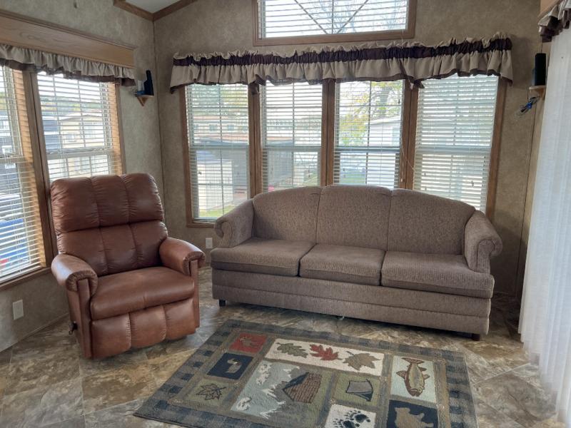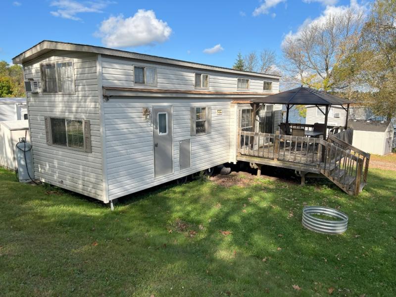 *This park model is set up on site 16 in our Oak Hill Campground, Oak Lake Campground, Kerrick, MN. This park model comes with a deck, hard roof gazebo on the deck and patio table & chairs. The yearly rent for this site is $3,900.00 plus electric. Call us at 218-496-5678 to set up a time to take a tour of this park model and our campground. Tours are available during the off season/winter months. See what our campground has to offer, www.oaklakecampground.com.