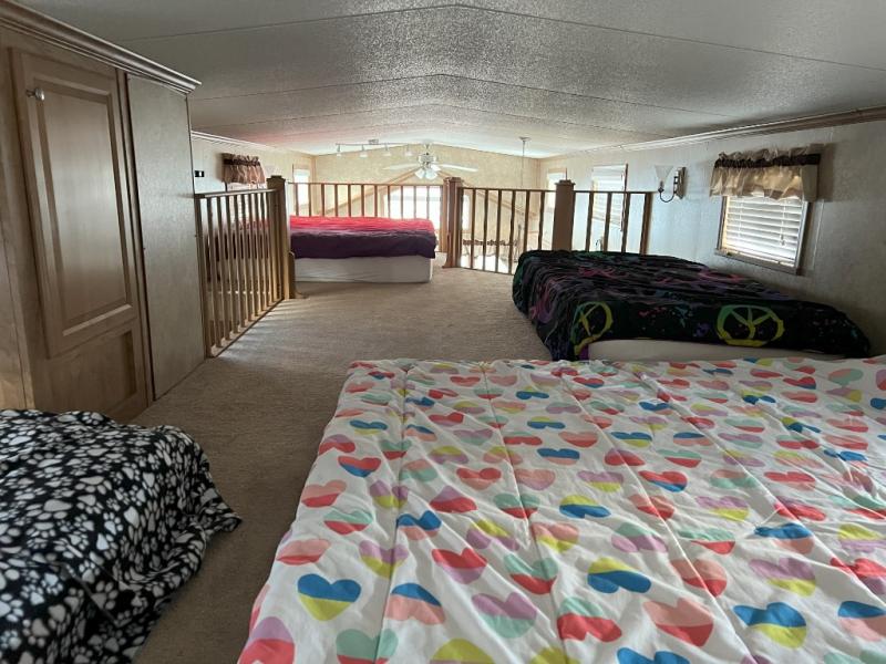 Upstairs you will find a large open loft. In the corner there is an angled cabinet, and along one wall you will find more storage with the closet and more!