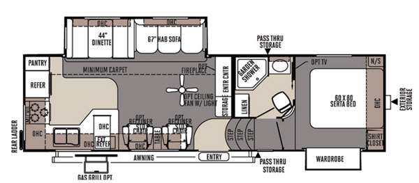 With all of the overhead cabinets and exterior pass thru storage, you won't be lacking for storage.