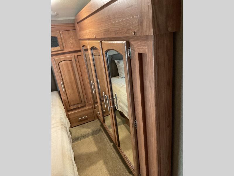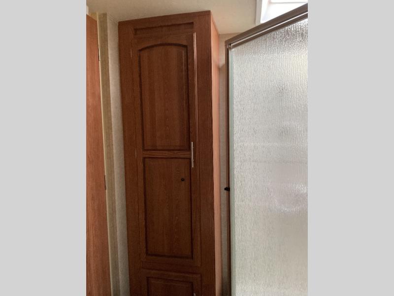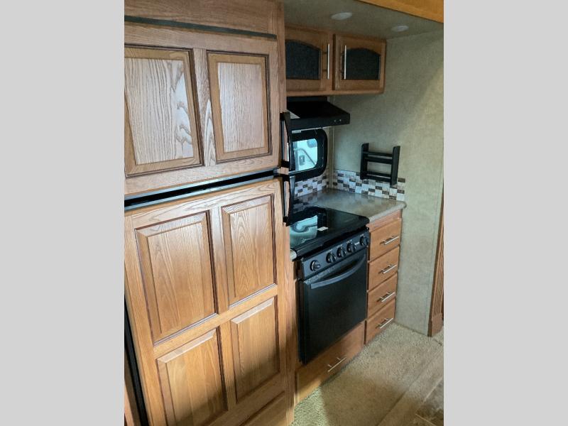You will find plenty of overhead cabinets throughout the fifth wheel as well as an exterior pass thru storage. You can even choose an optional gas grill and an optional rear ladder.