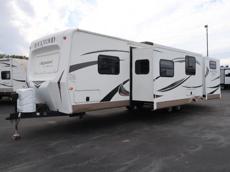Sleeps-10, Double Slide, 2-Power Patio Awnings, Heated/Enclosed Underbelly!!The Rockwood Signature Ultra Lite 8312SS travel trailer by Forest River offers double slides and a rear bunk house.