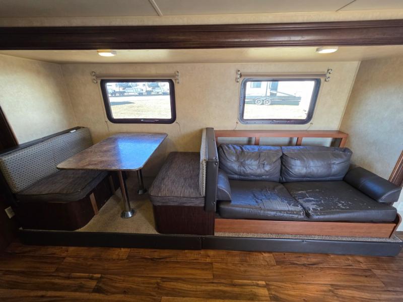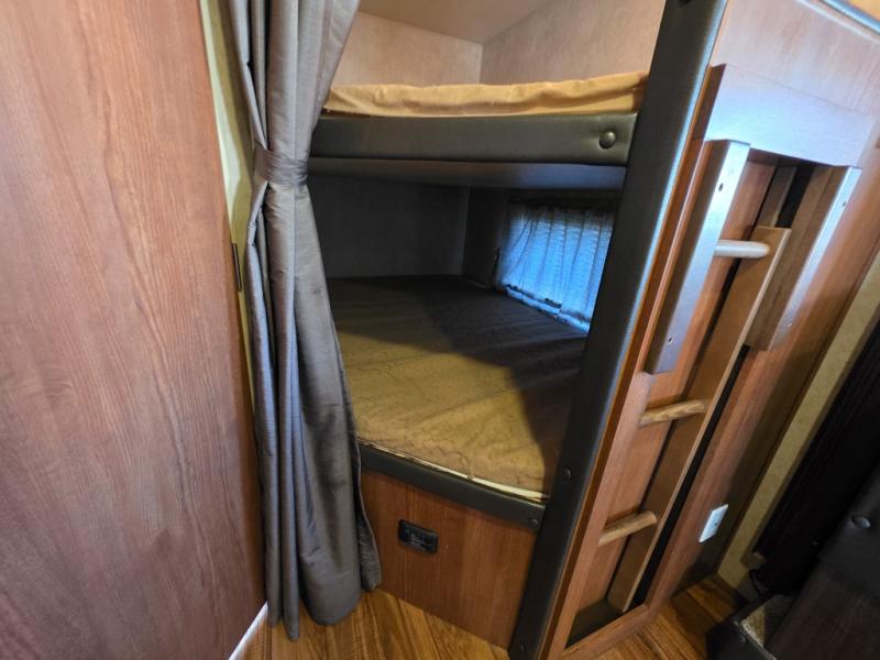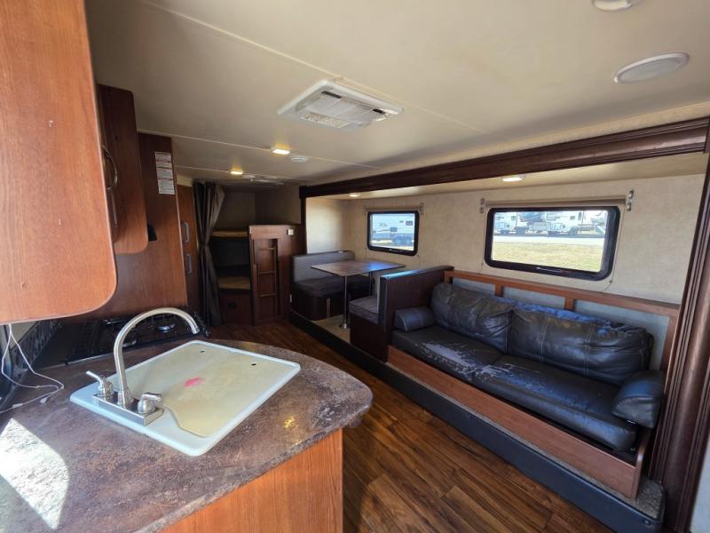 The 2015 Forest River Salem Cruise Lite 262BHXL is a lightweight, family-friendly travel trailer designed for easy towing and comfortable camping. It’s about 30' 5? long with a single slide-out and can sleep up to around 8–10 people, thanks to a front queen bed, double-over-double rear bunkhouse, plus convertible dinette and sofa beds, making it ideal for families or groups. Inside, you’ll find a full kitchen (three-burner stove, microwave, refrigerator), a bathroom with shower, and a central living area with seating. The unit balances lightweight towing (dry weight under 6,000 lbs) with practical amenities like air conditioning, pantry/storage, and pass-through exterior storage.