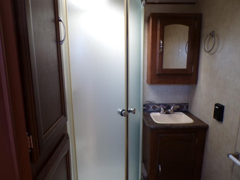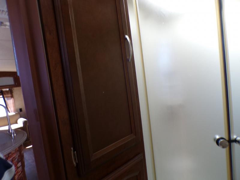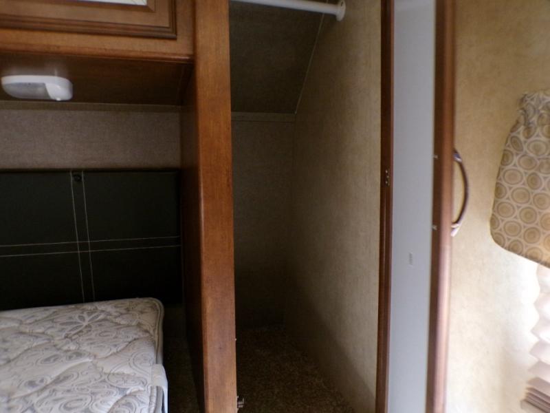 There are plenty of overhead cabinets throughout the travel trailer, as well as a large pass thru storage.
