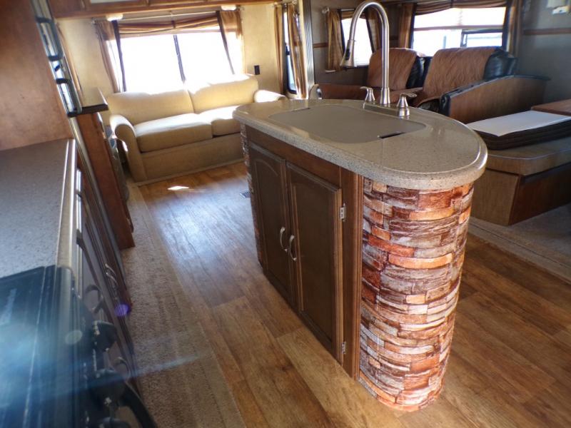 Outside you can enjoy the optional exterior kitchen which has a refrigerator, and an optional swivel gas grill.