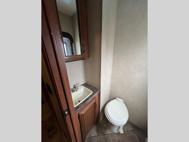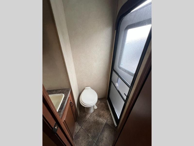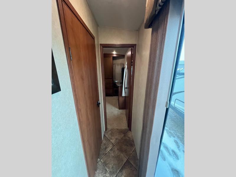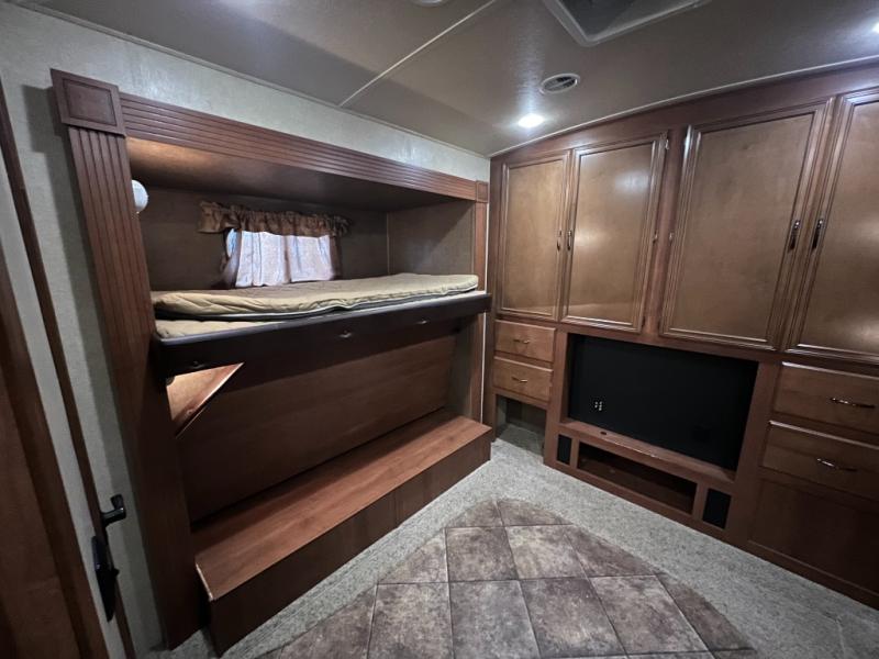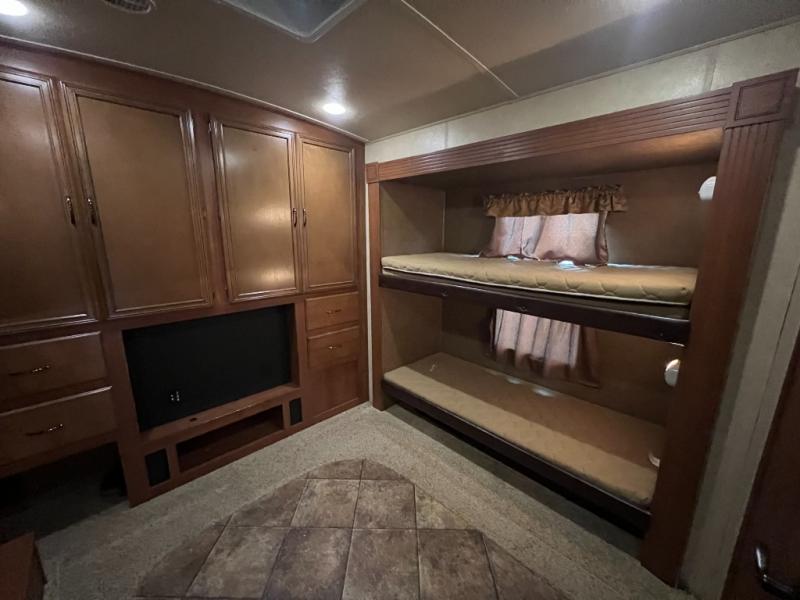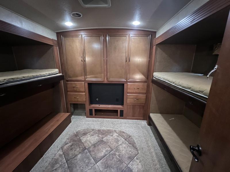 In the rear, there is a private entrance into the half bath. Off of the bathroom is the bunk house. Your kids are sure to enjoy their own space! There are two bunk slides, double wardrobes, and a rear entertainment center.