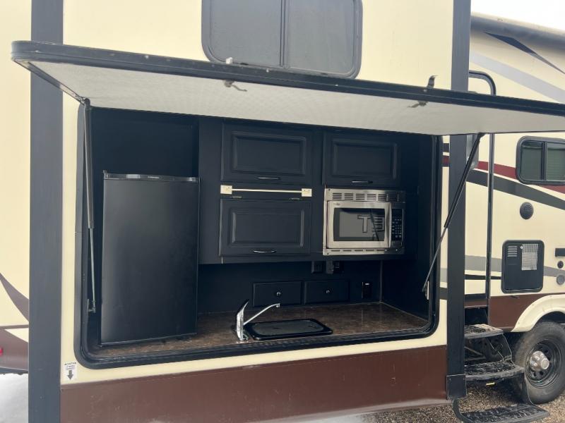 You can even choose an optional exterior kitchen with a sink, and microwave, and a bumper mount swivel gas grill.