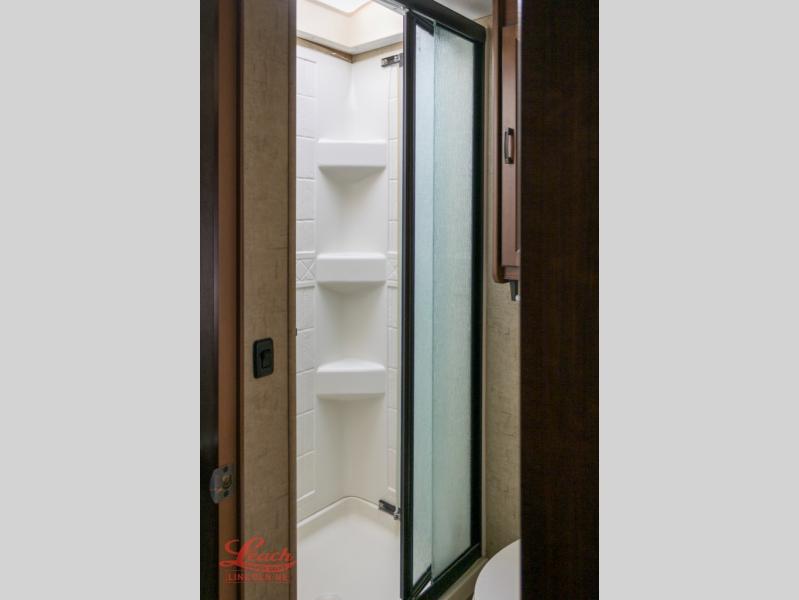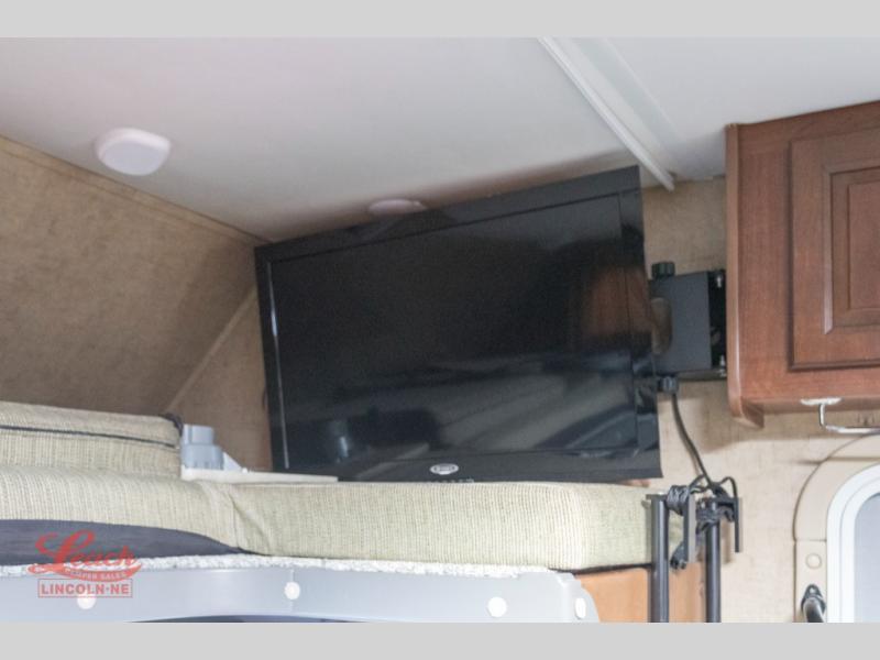 As you enter the motor home, above the cab you will see a 54" x 80" bunk or you can choose an optional entertainment center. In the corner of the cab there is a 32" TV.