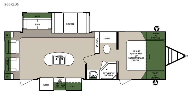 The Surveyor 265RLDS travel trailer by Forest River offers double slides and a rear living area.