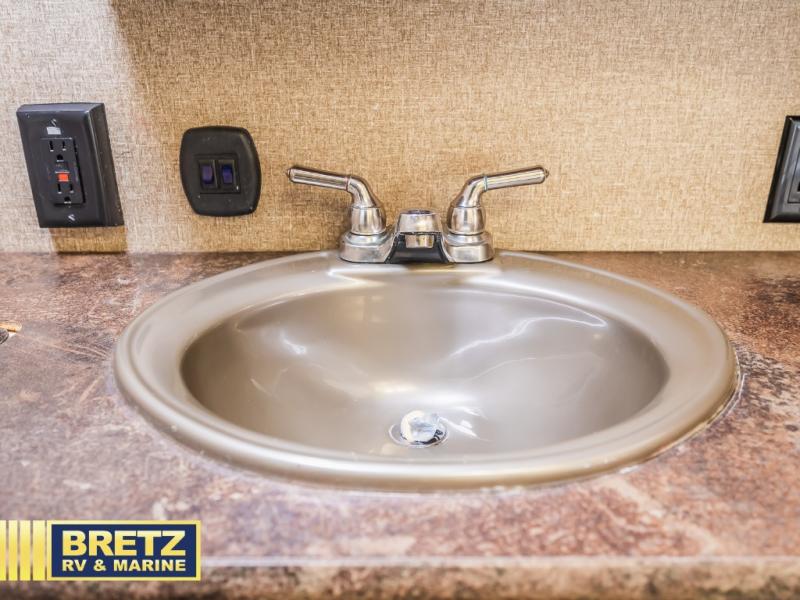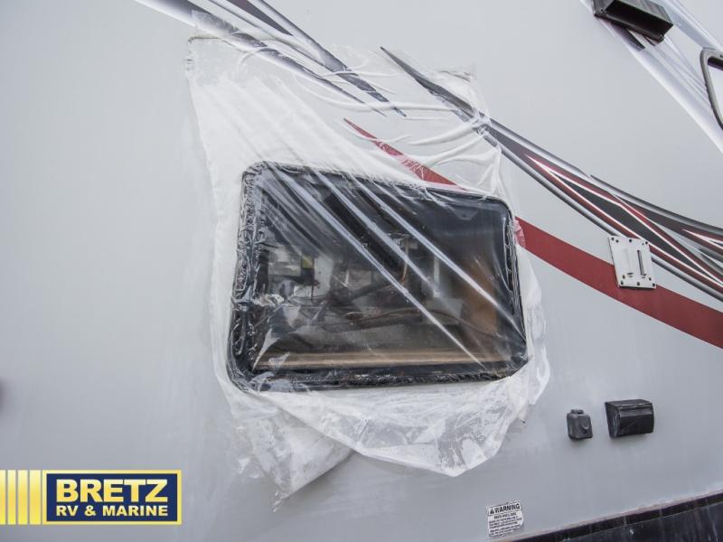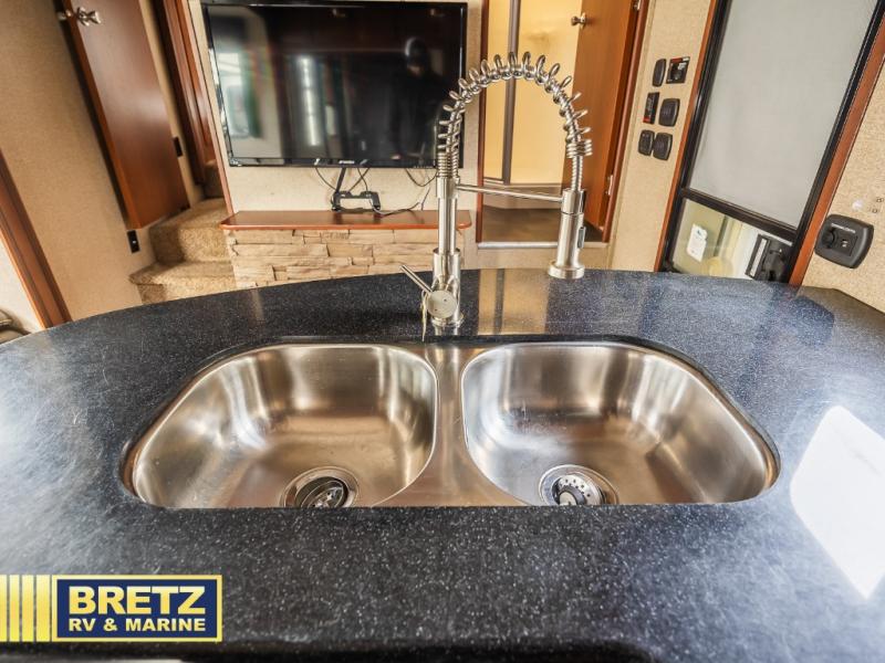 You can bring all of your favorite off-road toys and head to the nearest sand dunes or woods with the Vengeance 3062V toy hauler fifth wheel by Forest River. This double slide toy hauler has a spacious cargo area with a flip-up sofa, free-standing table and a TV mount in the corner. You will also find that it is washer and dryer prepped.