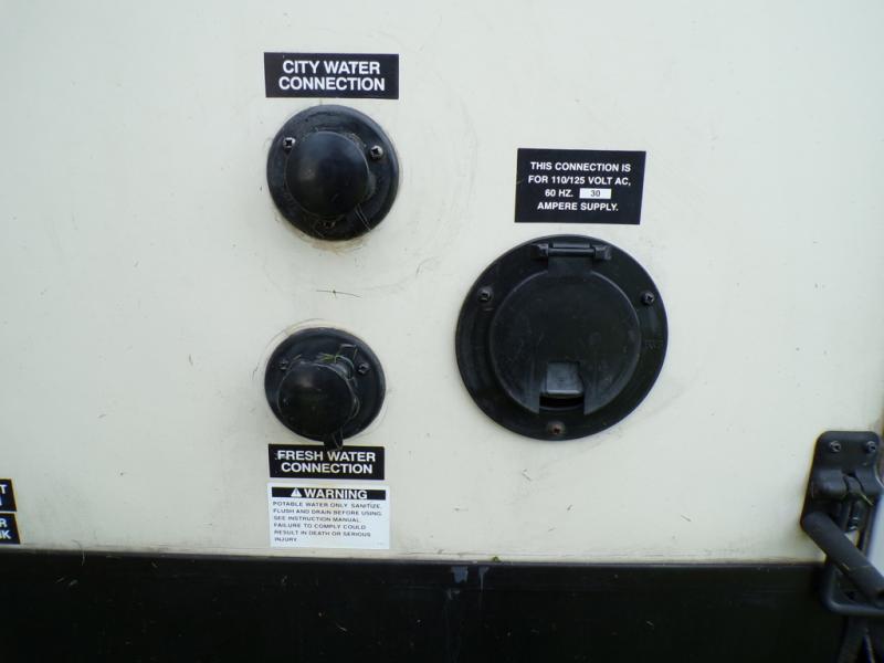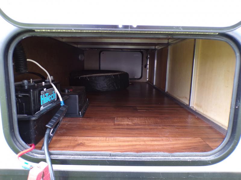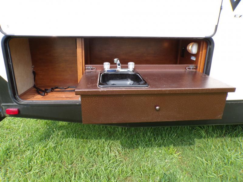 Outside you can enjoy the optional exterior kitchen which includes a sink and refrigerator. There is also an optional gas grill that you can choose for your trailer.