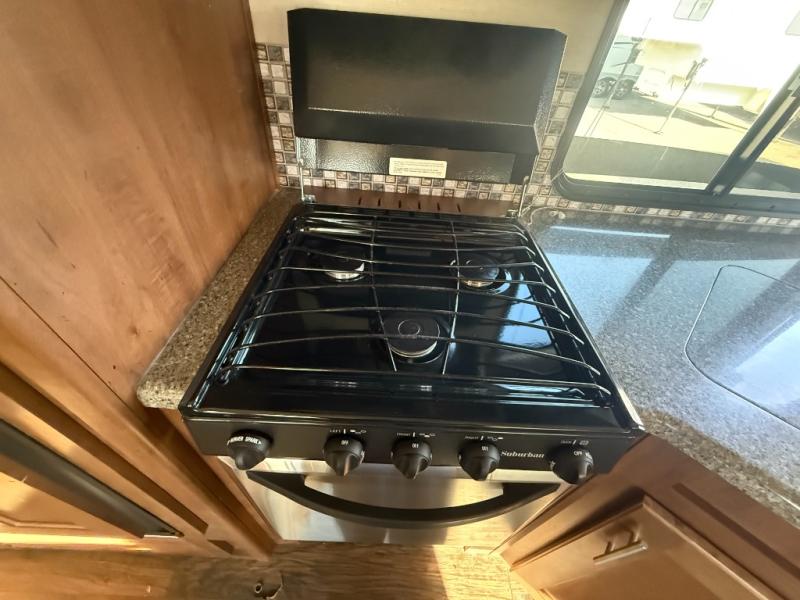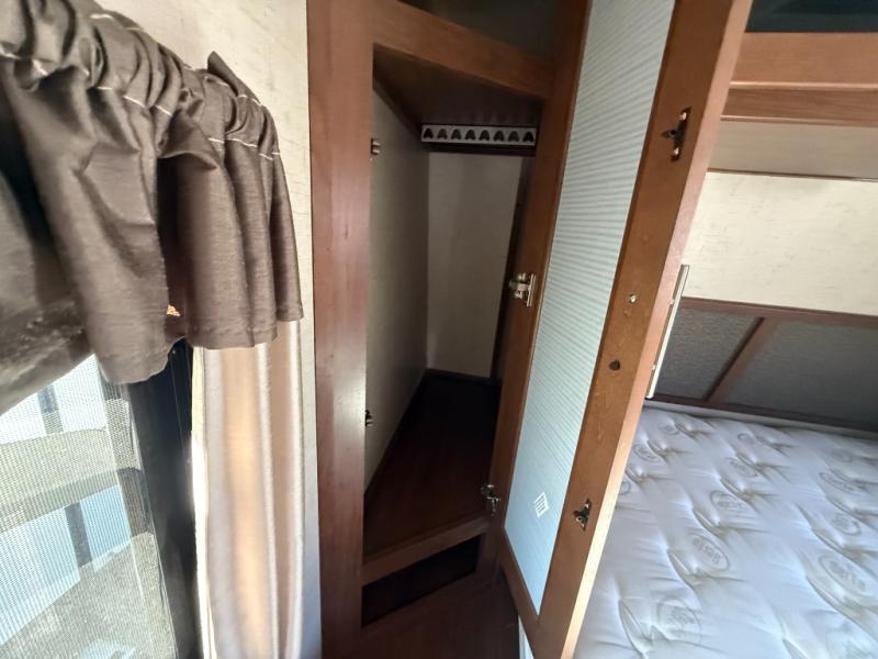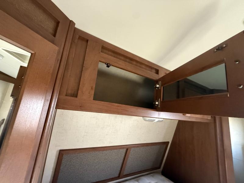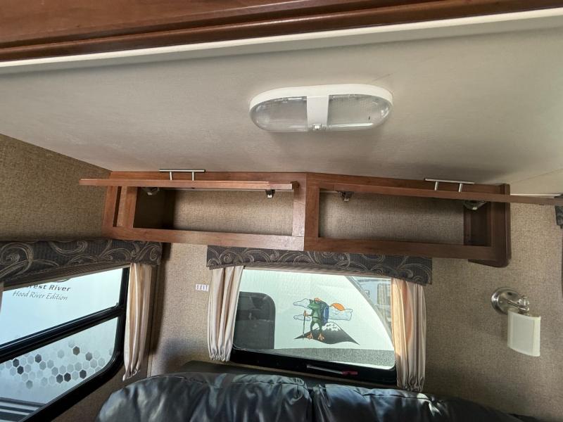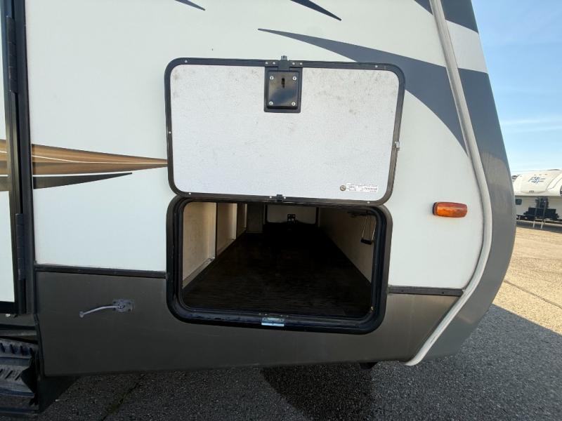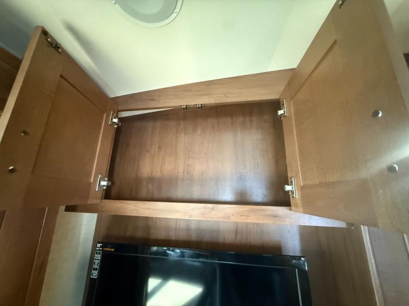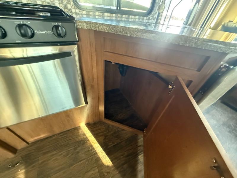 Storage shouldn't be a problem with the overhead cabinets throughout the trailer as well as the exterior pass thru storage area. Also outside, take advantage of the outside shower. You can clean up quickly before entering the inside of the trailer. The 18' awning comes in handy to provide shade.