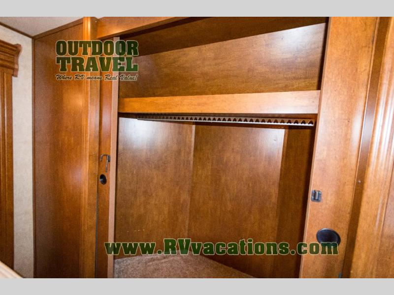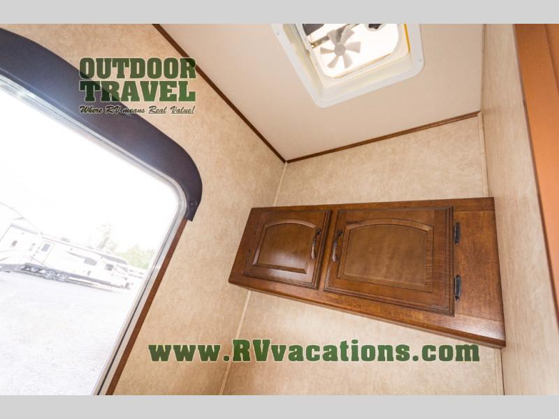 There are plenty of overhead cabinets throughout the fifth wheel as well as a large pass thru storage.
