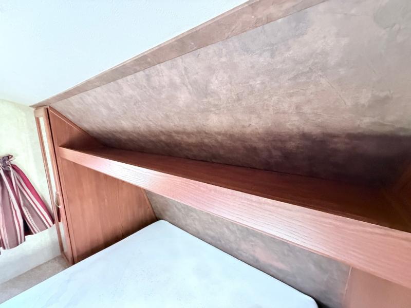 Step into the Wildwood X-Lite 241QBXL to find a front bedroom with a queen bed, wardrobes at each side and an overhead shelf above the head of the bed.