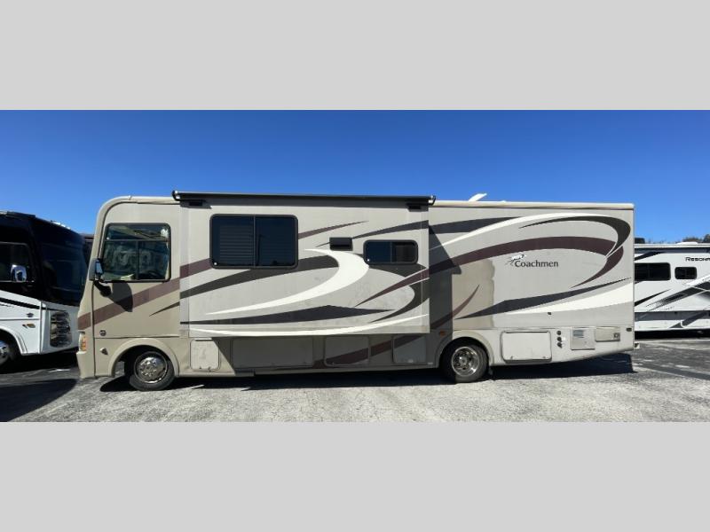 This preowned 2015 Coachmen RV Pursuit 29 SB offers the space, comfort, and reliability families need to make lasting memories on the road. Inventory moves quickly, especially on bunkhouse Class A motorhomes.