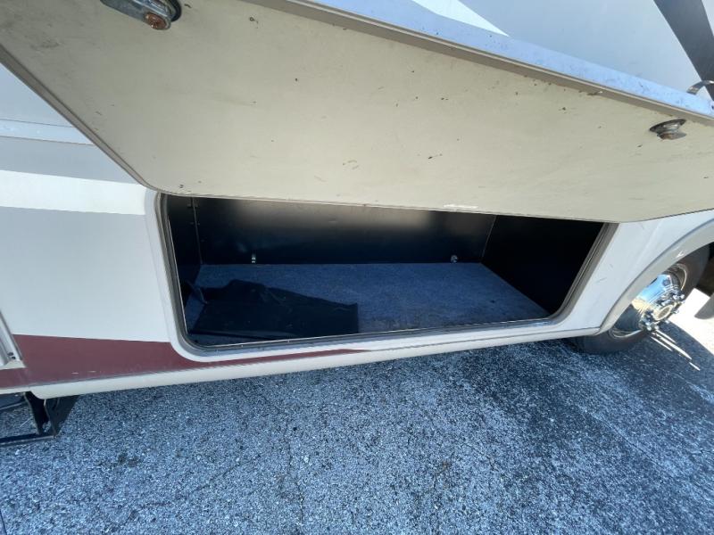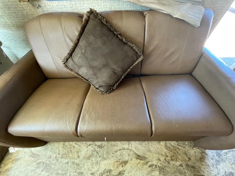 Model 29SB features a jack-knife sofa to the right of the entry door which includes overhead storage. There is an electric drop down bunk above the cab area for additional sleeping space if needed also.