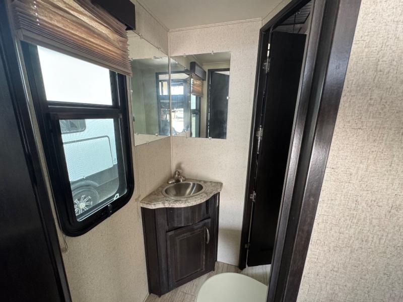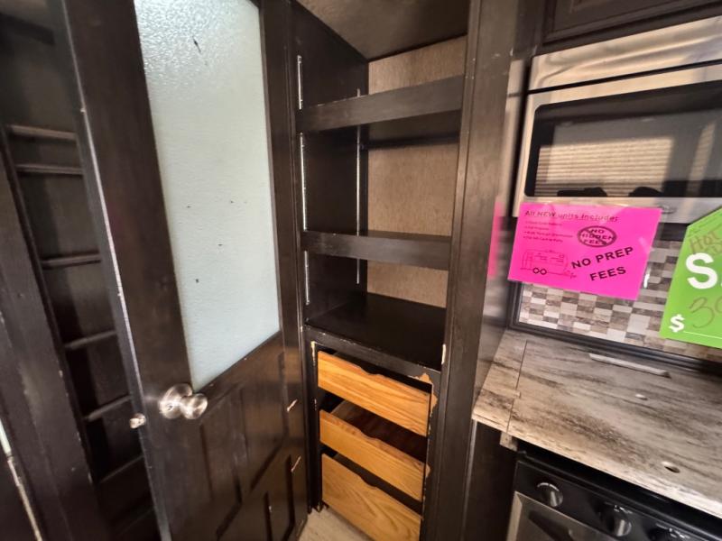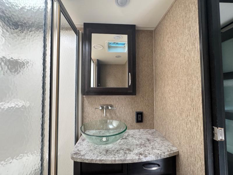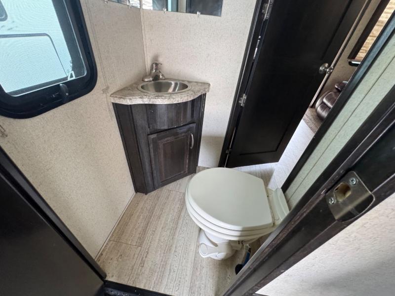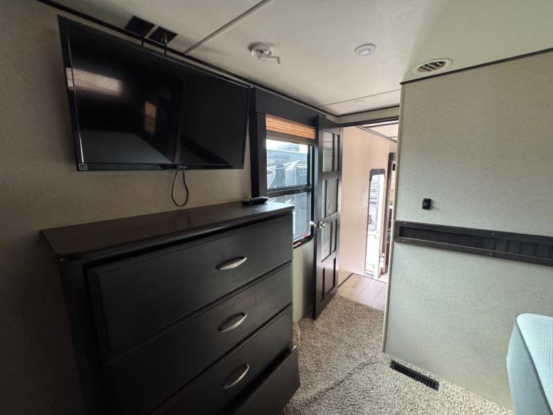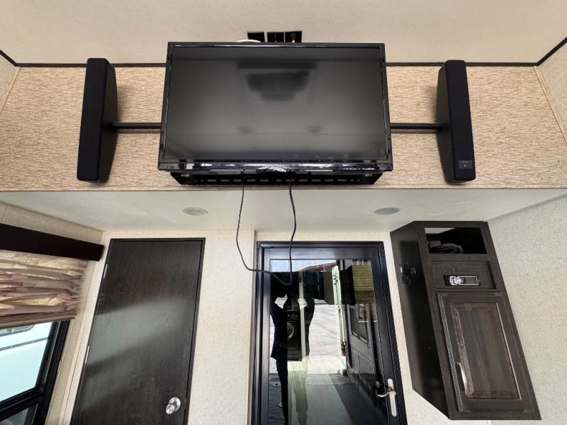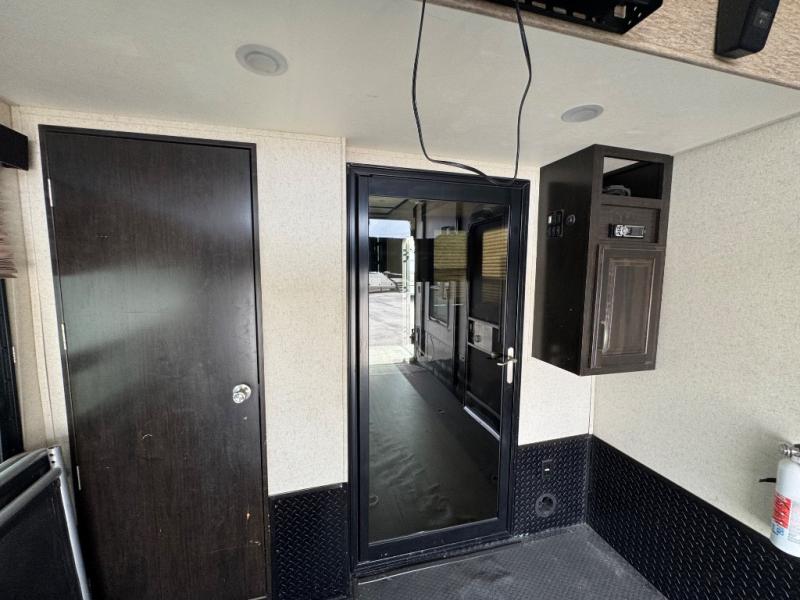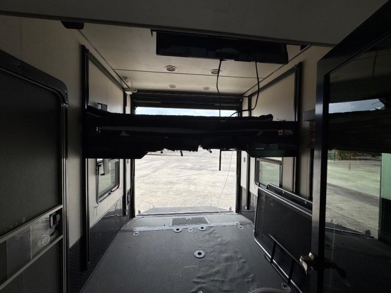 Step inside using the rear ramp door and see how easy it will be to transport your outdoor toys and gear to and from your favorite locations. There is an LED TV on the interior garage wall. The side man door lets you get in and out of the garage when the ramp door is closed. There is a twin loft bed above the cargo space that the kids will surely love. There is also a radio and a half bath featuring dual entry doors.
