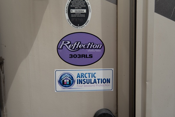This Grand Design Reflection mid-sized fifth wheel 303RLS is the perfect weekend camper featuring triple slide outs and a rear living area.