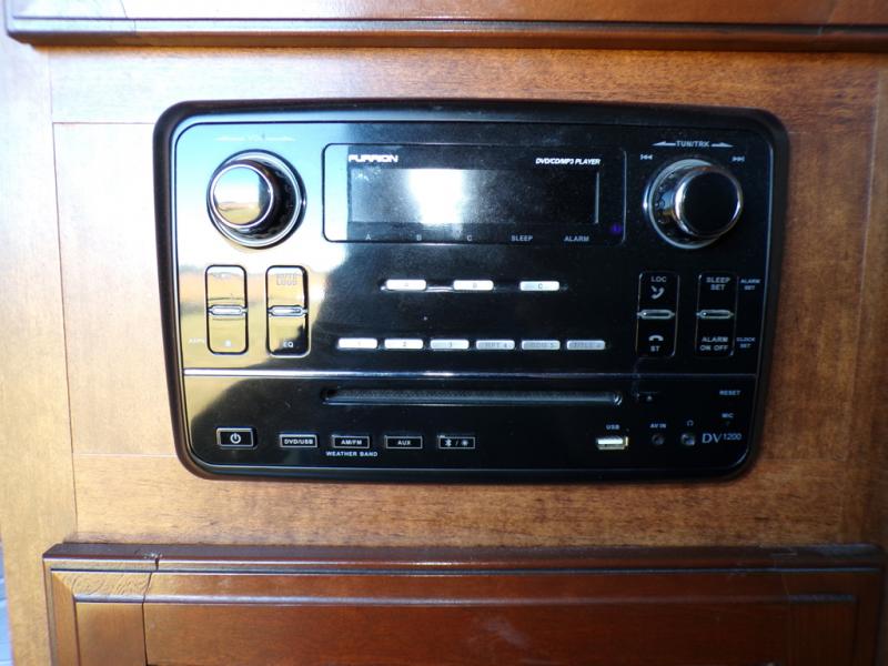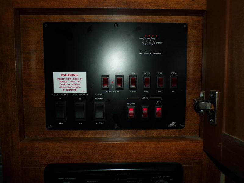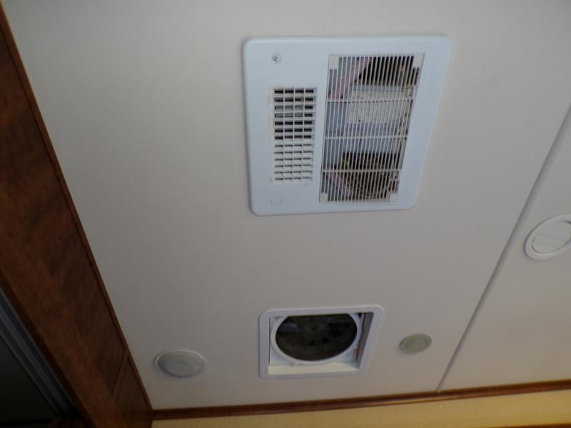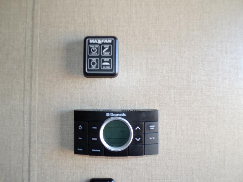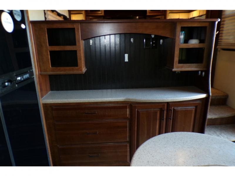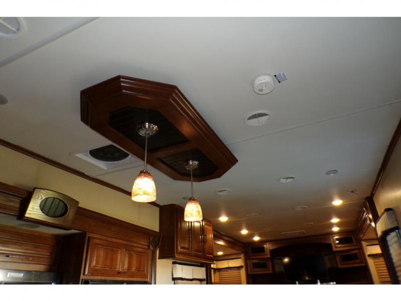 The front living area also features dual slides with two 80" tri-fold sofas. There is a 58" theater sofa to the left as you enter the living space and a 50" LED HDTV at the front of the room with optional fireplace below. The perfect space for entertaining guests and enjoying a conversation with family and friends.