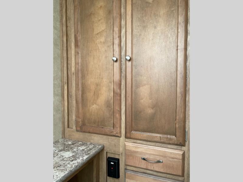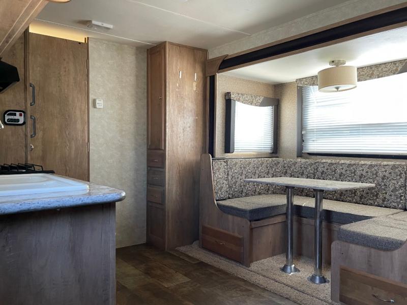 As you step inside you will notice the increased interior space with the slide out u-shaped dinette fully extended. There is also a pantry off to the side and outside storage within the slide out.