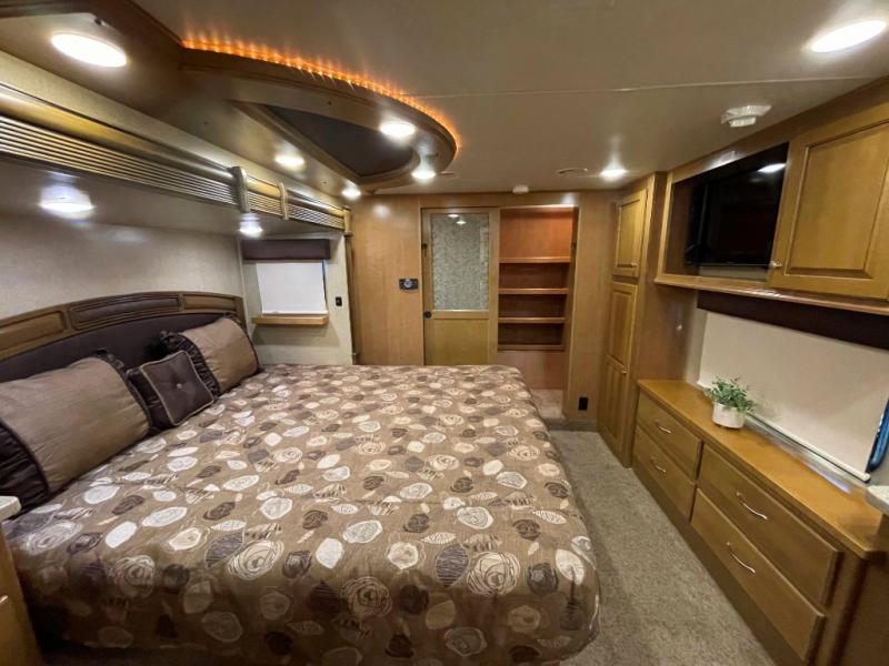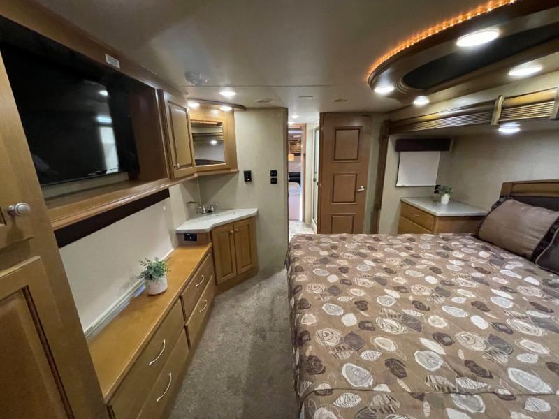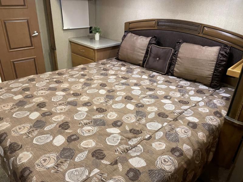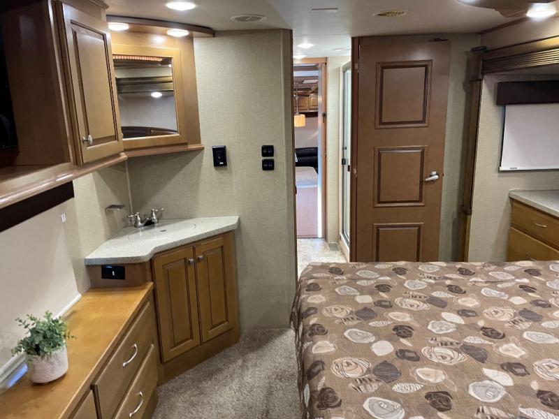 Lastly, step into a large spacious bedroom with king bed slide including more storage. There is a large front wardrobe with sliding doors, plus more drawer storage opposite the bed. There is also a corner sink, and so much more!