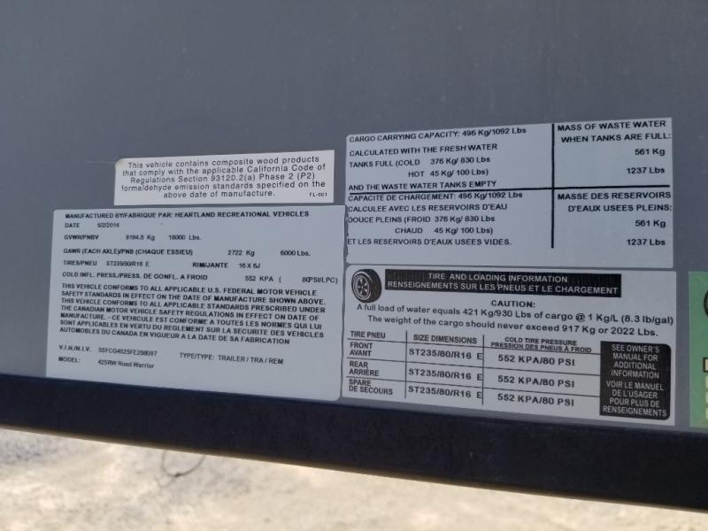 Used 2015 Heartland Road Warrior 425 Toy Hauler Fifth Wheel