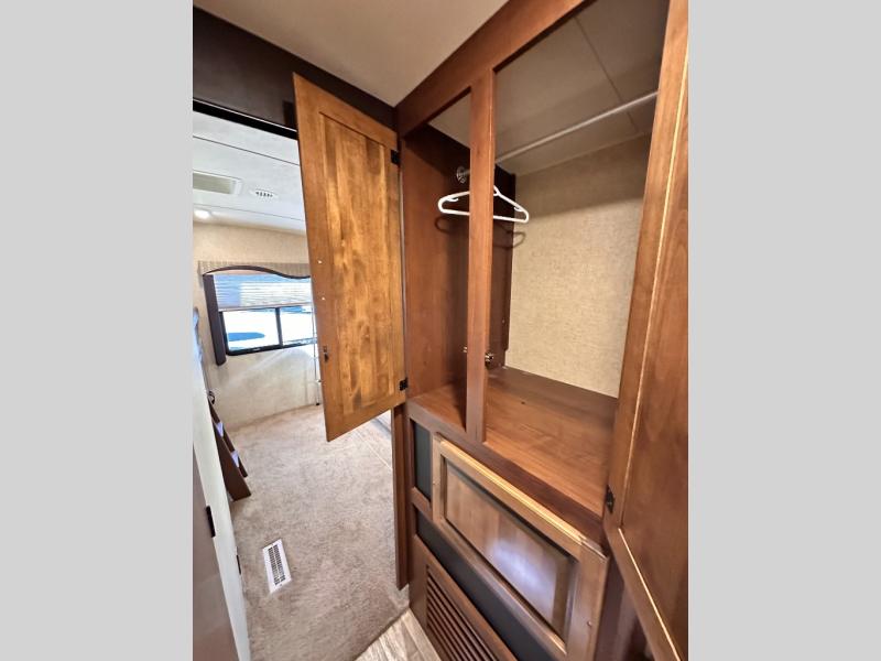 The rear bunk house has a slide with a futon and an upper and lower bunk or you can choose an optional trundle bed. Across from the slide there is a wardrobe cabinet with TV and an upper bunk. Just outside of the bedroom is a large wardrobe.