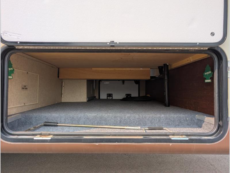 There are overhead cabinets throughout the fifth wheel, as well as exterior storage. You can even choose an optional table & chairs in place of the booth dinette, and you can also choose optional recliners in place of the lounge chairs.