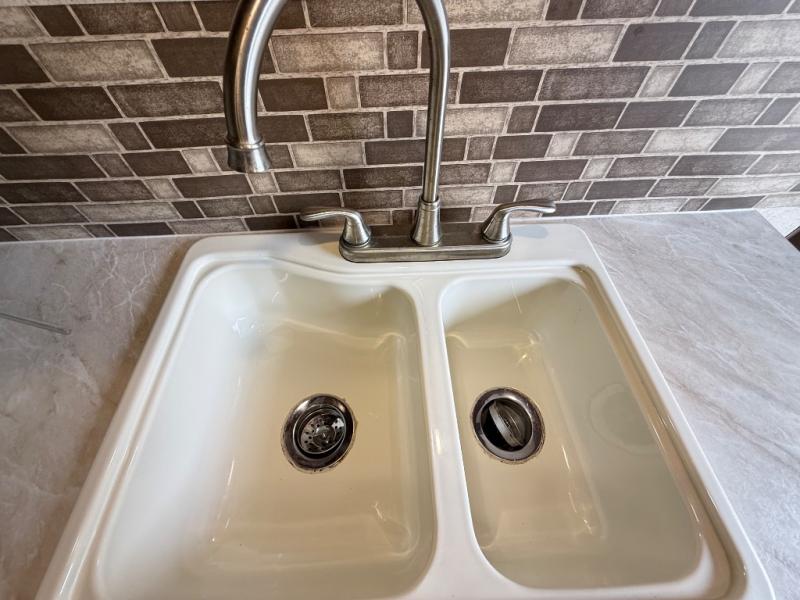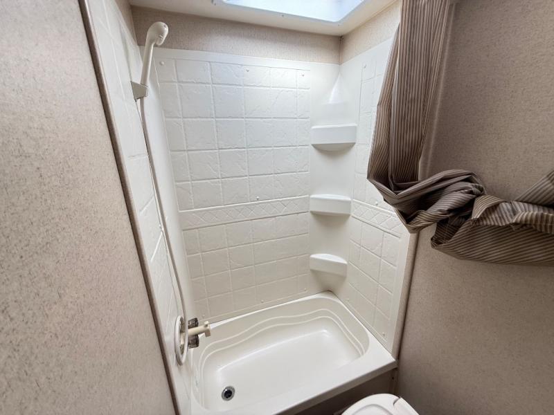 In the rear you will find the bathroom. There is a tub/shower and toilet. Just outside of the bathroom there is a sink and medicine cabinet.