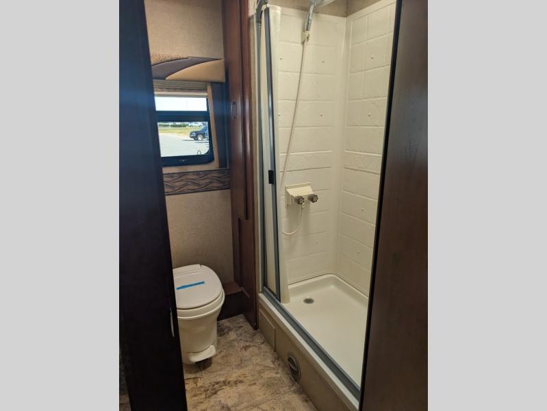 There are plenty of overhead cabinets throughout the motor home plus exterior storage. Outside of the motor home, you will enjoy relaxing under the 10'8" awning which provides shade from the sun.