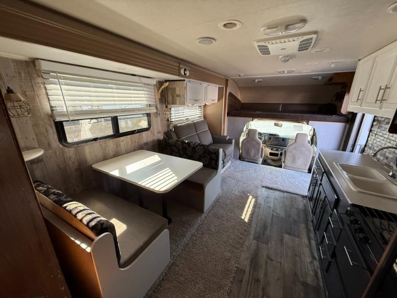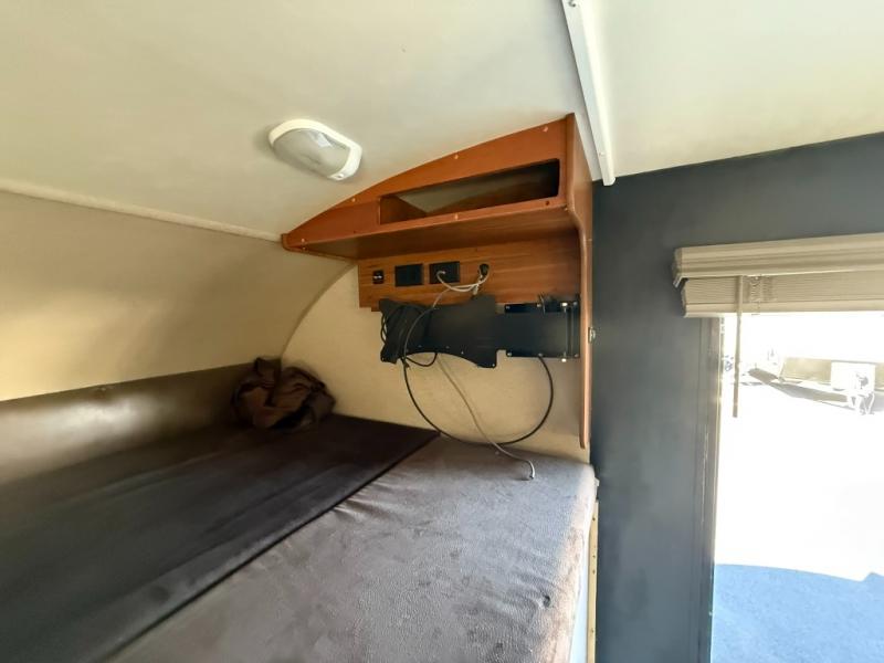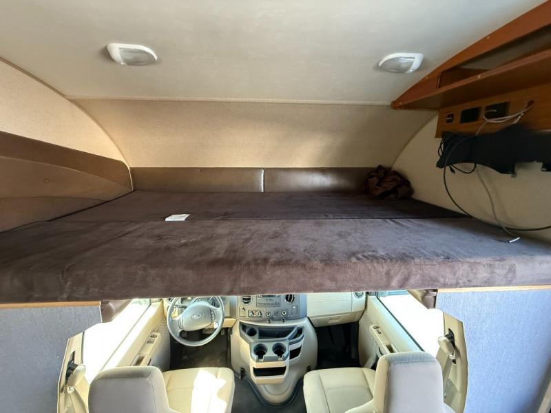 In the front of the motor home, you will also find a cab over bunk and an overhead TV.