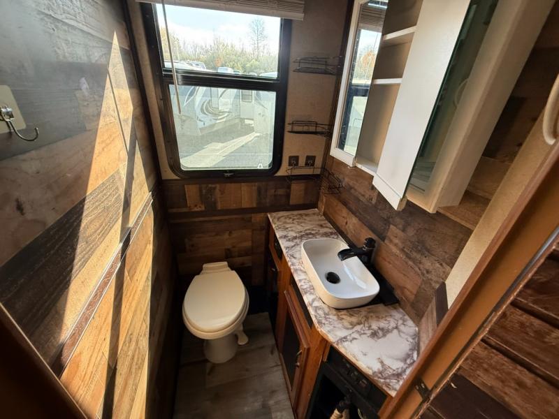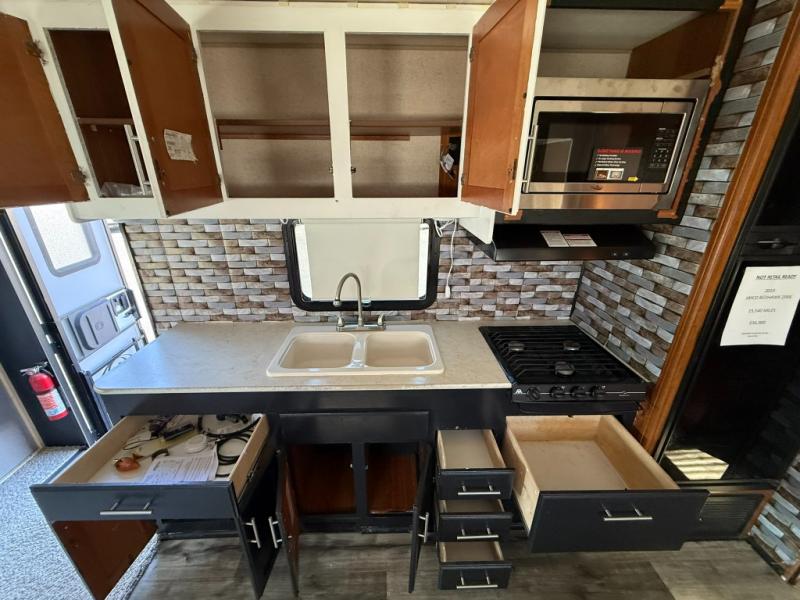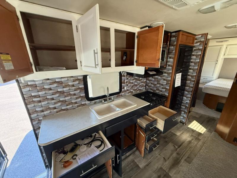 There are plenty of overhead cabinets throughout the motor home as well as exterior storage. You are also sure to enjoy the 16' awning and the shade it provides from the outside elements.