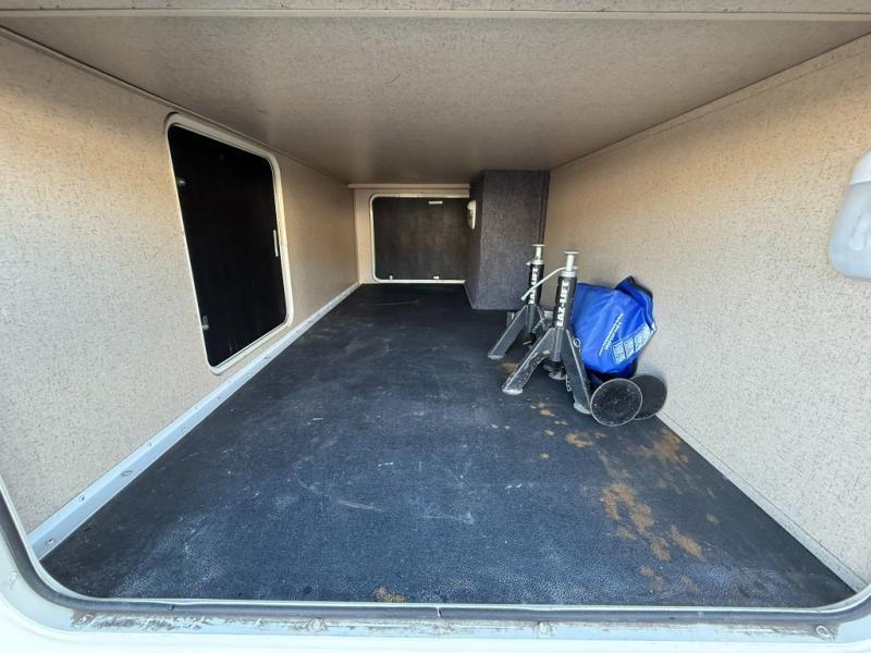 The rear bedroom is very spacious and has a comfortable queen bed, nightstand, and wardrobe.