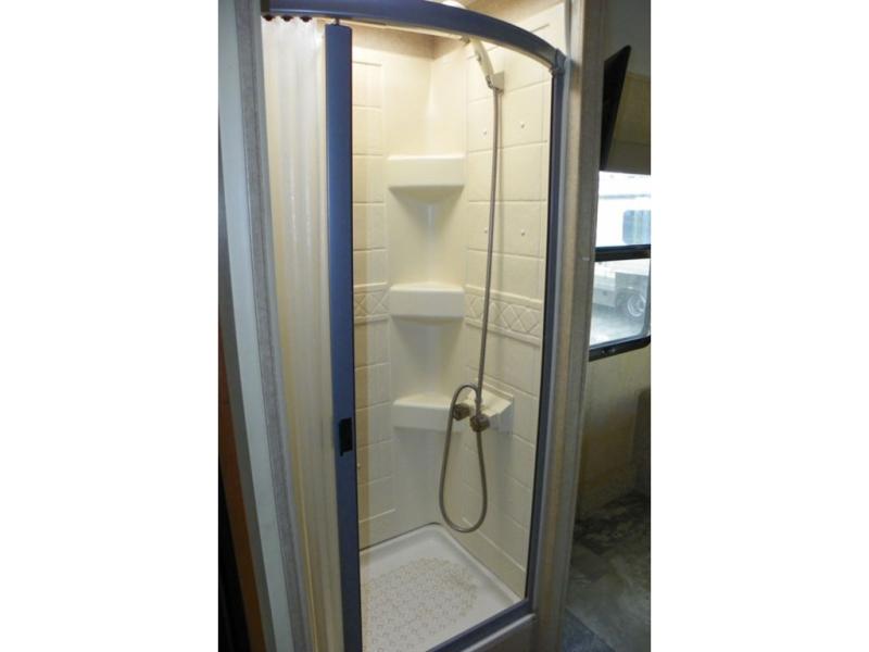 There are plenty of overhead cabinets throughout the motor home as well as exterior storage. You are also sure to enjoy the 16' awning and the shade it provides from the outside elements.