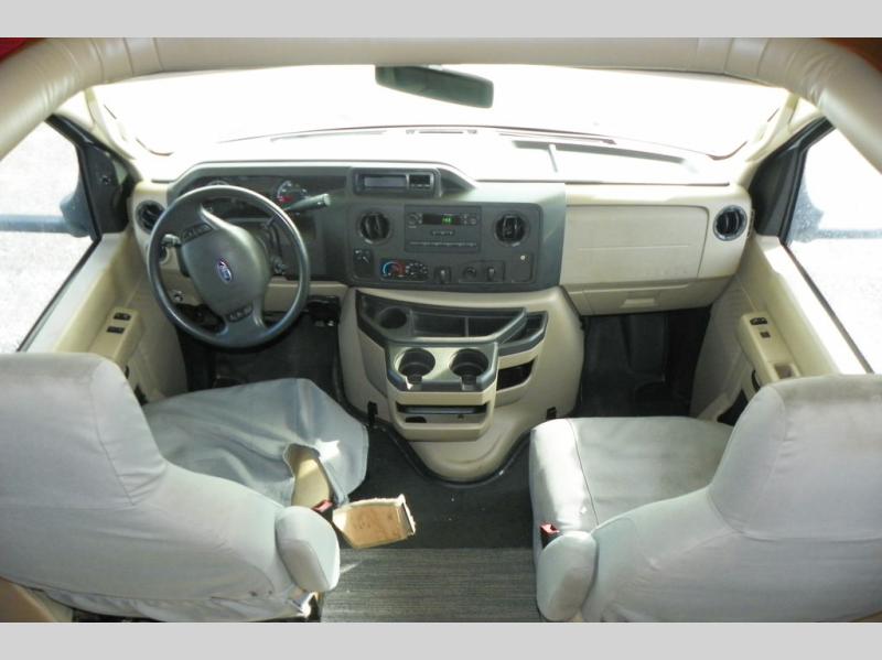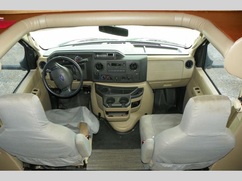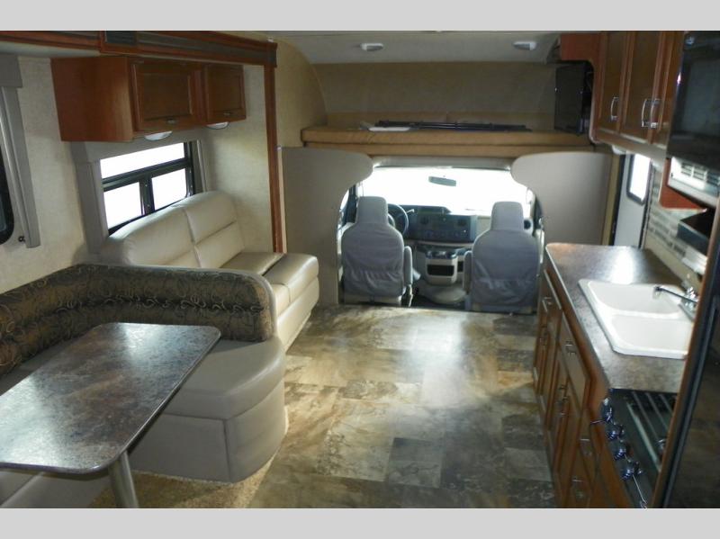 In the front of the motor home, you will also find a cab over bunk and an overhead TV.