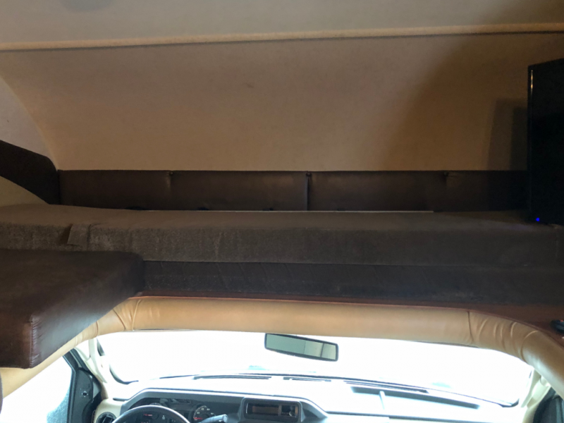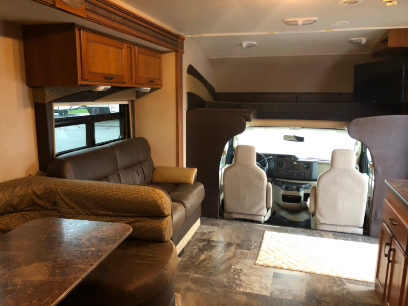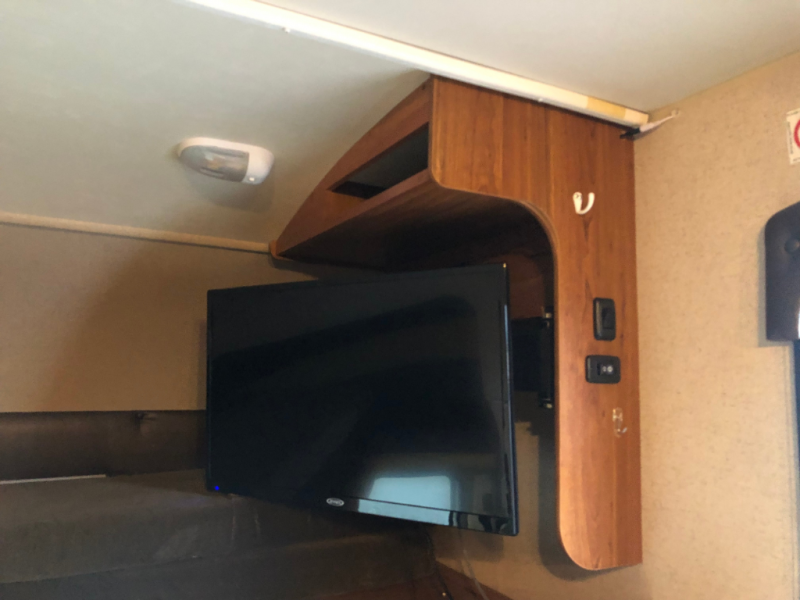 In the front of the motor home, you will also find a cab over bunk and an overhead TV.