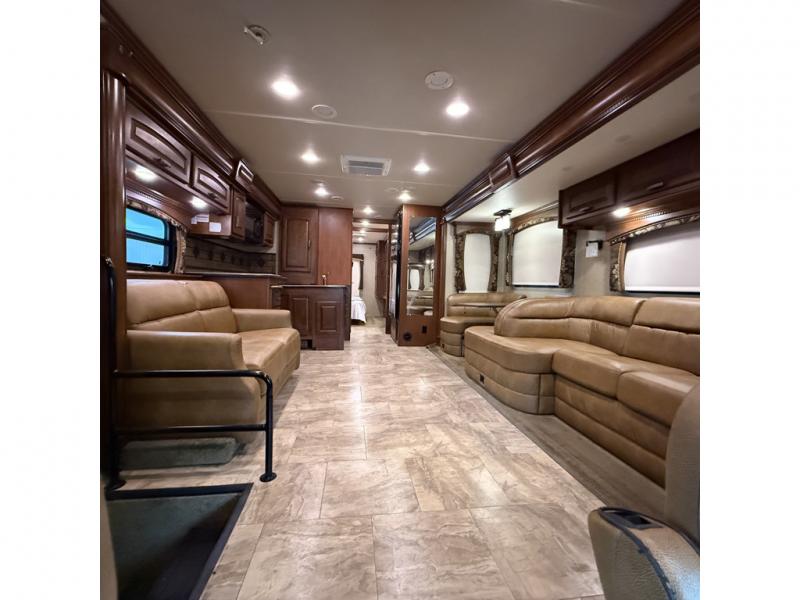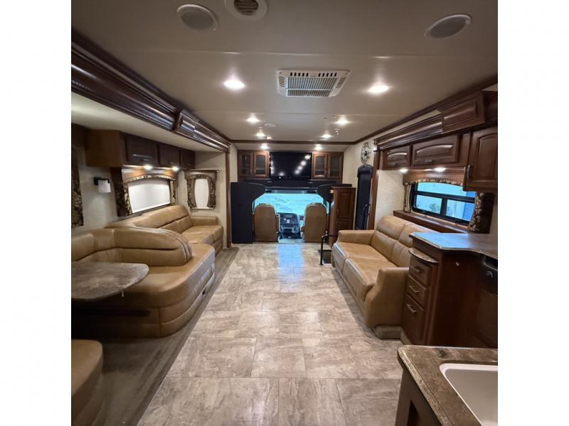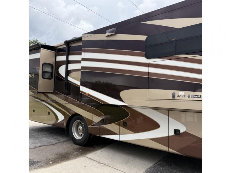 Spacious, luxurious, and built for unforgettable journeys!The Seneca 37TS motor home offers triple slides, and much room in the main living area.