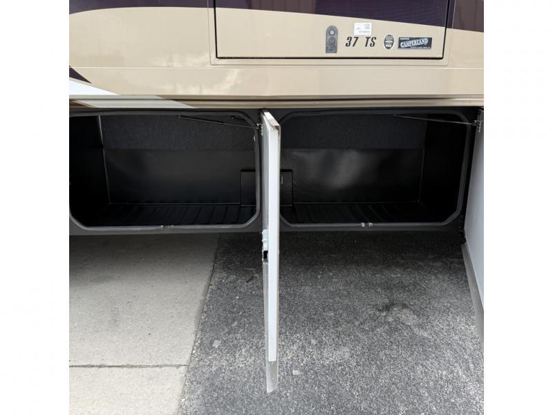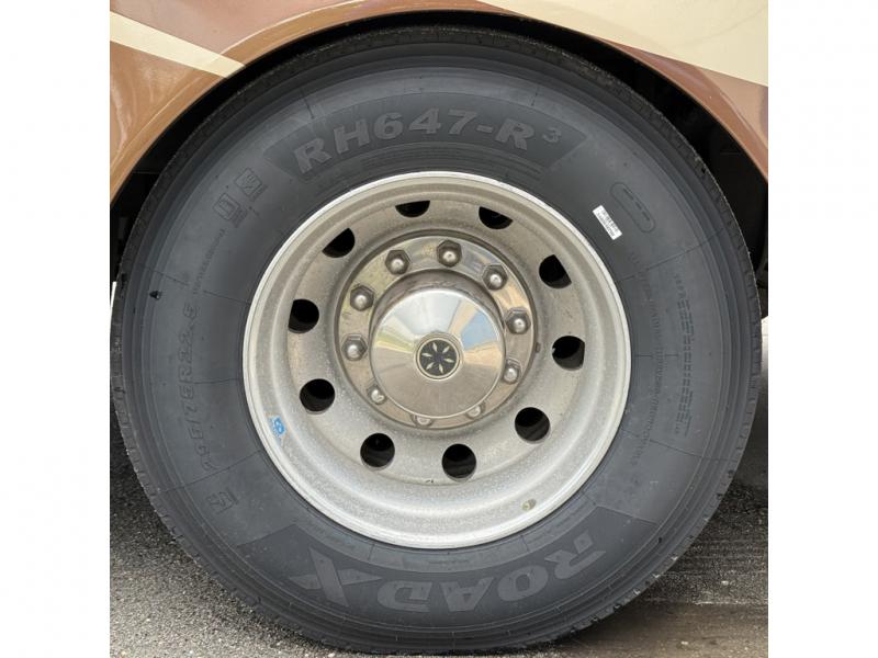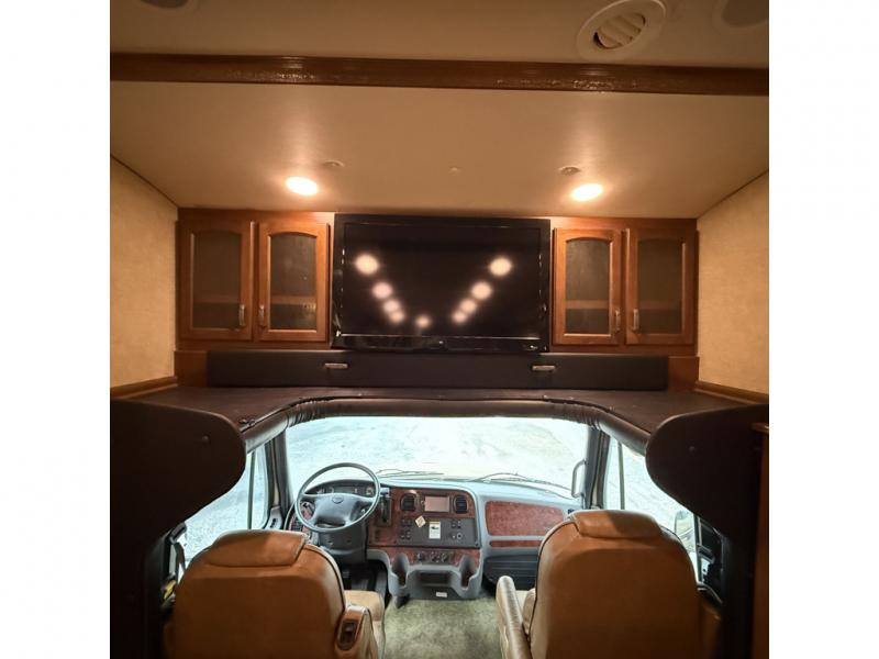 There are plenty of overhead cabinets throughout the inside of the motor home as well as exterior storage. You can even choose a few options such as a front entertainment center with a 32" TV, a booth dinette, and a washer and dryer.