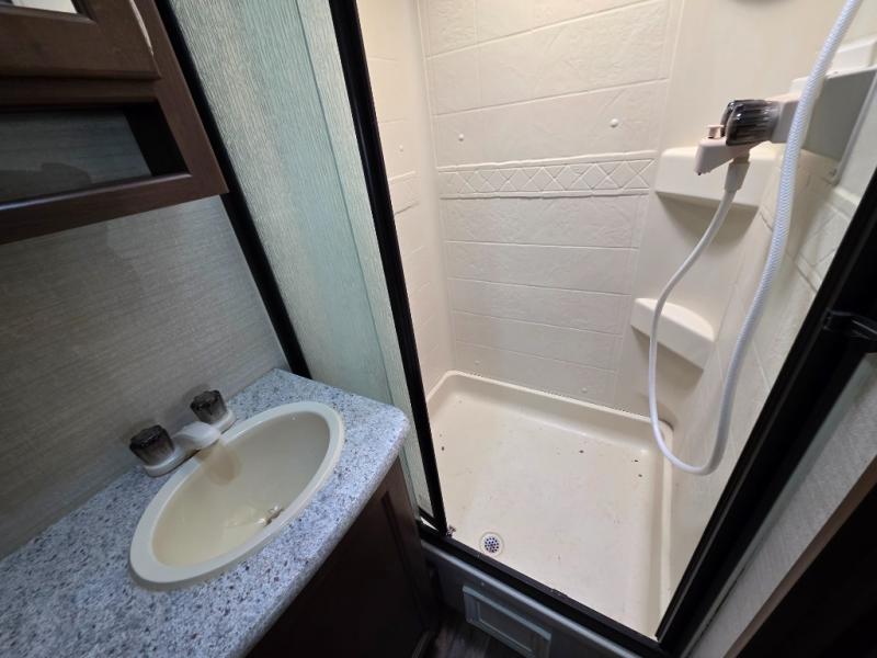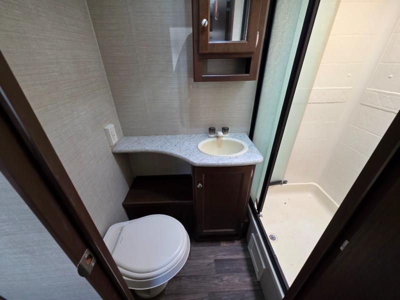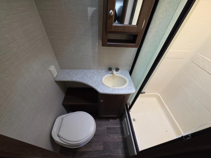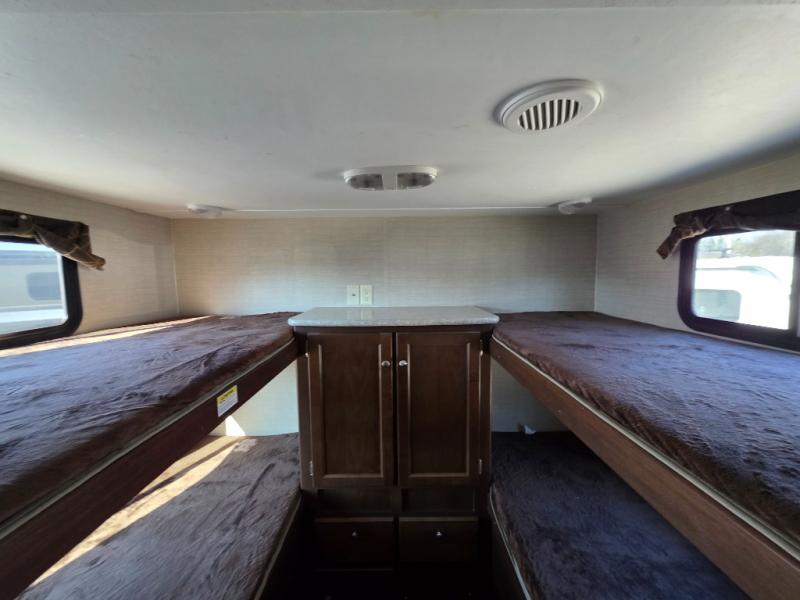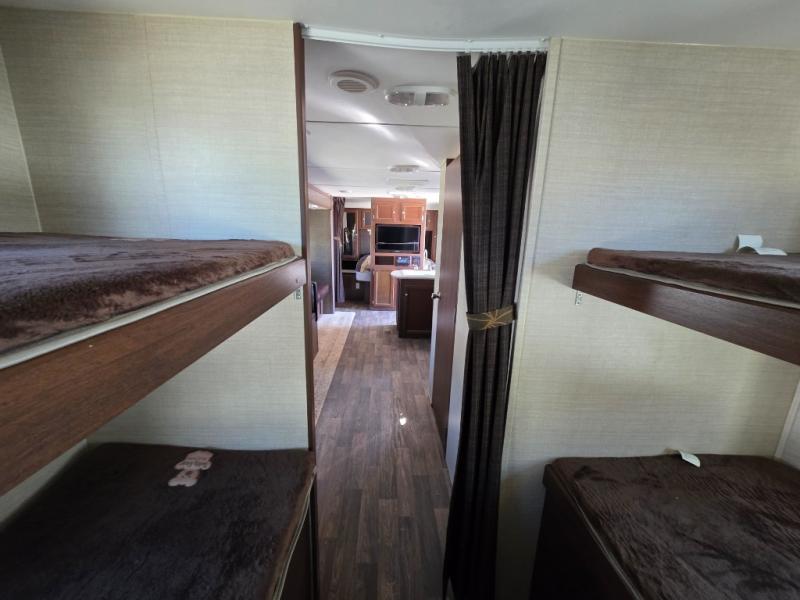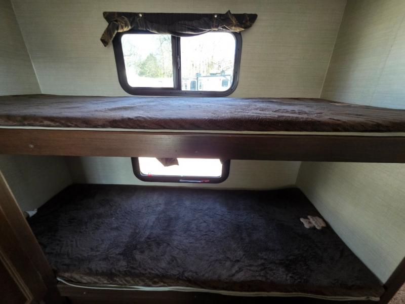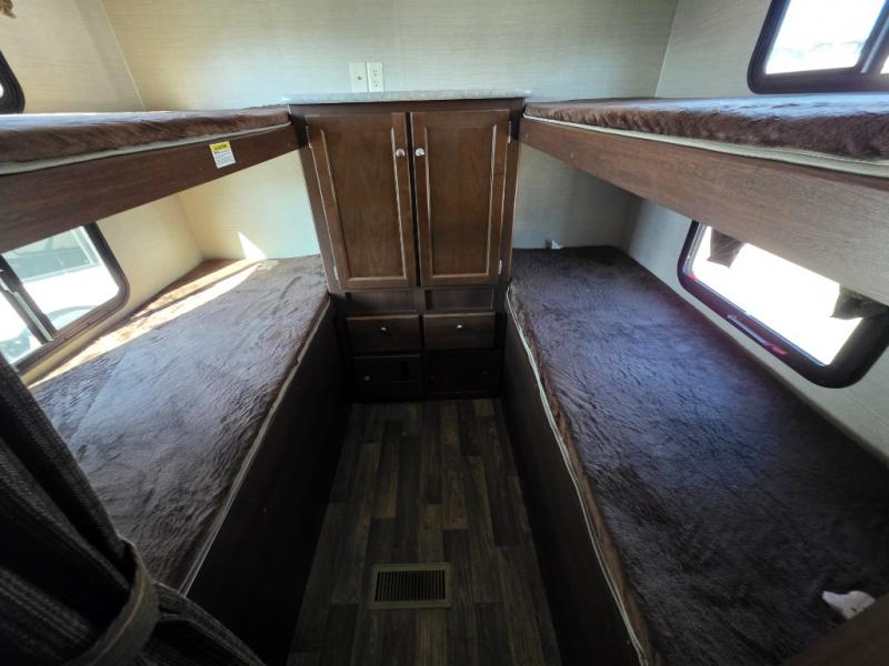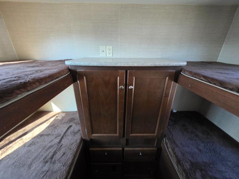 Enjoy plenty of sleeping space for kids or extra guests in the rear bunkhouse with two sets of bunks. One set is oversized at 32" x 74", while the other is 28" x 74". There is also a wardrobe in between for clothes and so much more!