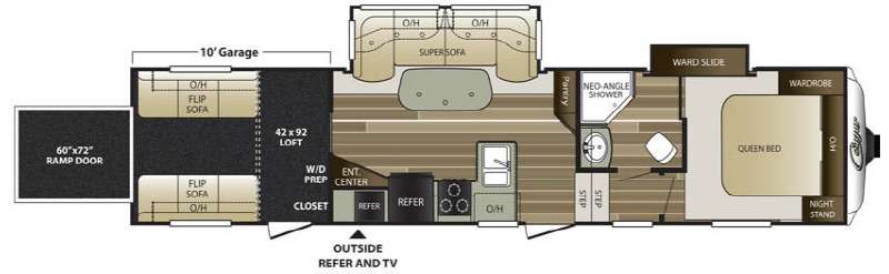 This Keystone Cougar fifth wheel toy box on wheels can get you to and from all of your favorite destinations and make your stay the most enjoyable! With a 10' cargo garage space, and a 60" x 72" rear ramp door, loading and unloading model 326SRX will be a cinch.